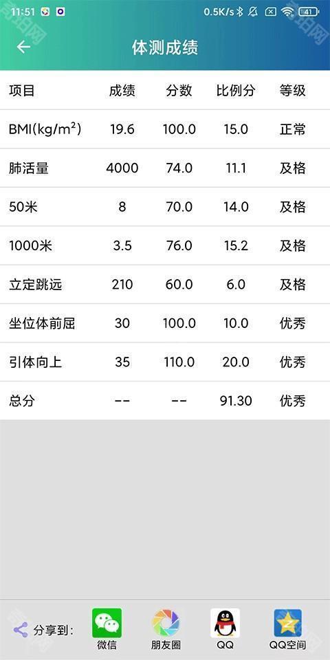 4、查看你的体测成绩。