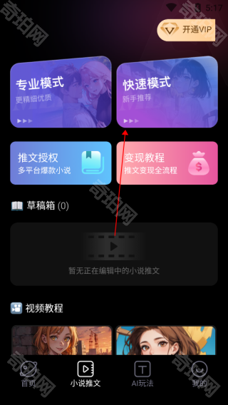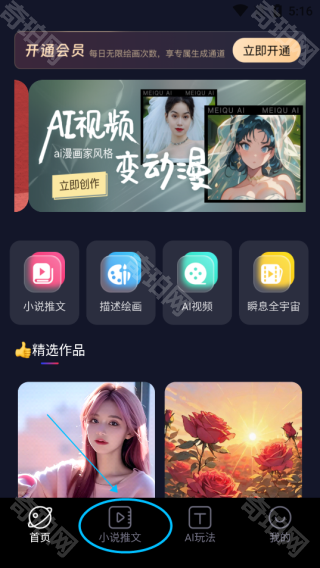 1、在本站下载好美趣AI app后,打开软件,找到小说推文进行点击。