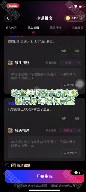 5、检查并调整字幕内容,点击开始生成,可以先预览,确保ai生成无误可继续生成。