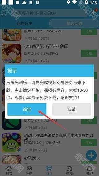 2、最新版的软天空软件需要观看广告才能下载,点击确认按钮。