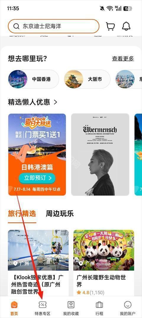 1、打开客路旅行App,点击【特惠专区】