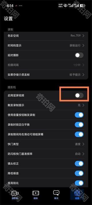 2、在设置界面中,根据个人需求进行参数调节,若你希望以竖屏方式拍摄,请开启「启用竖屏视频」选项。