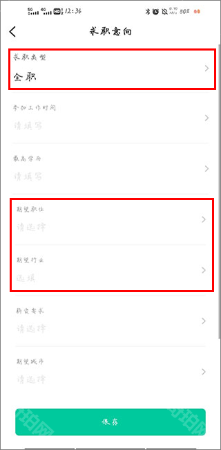 3、用户在填写完成后,在我的这一栏可以编辑自己的求职意向,如全职、兼职、期望行业等等。