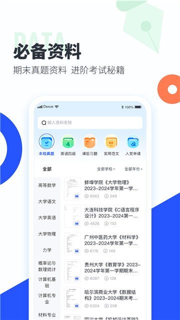 1、软件有着最全的大学资料库,各类考试真题、复习资料免费下载。