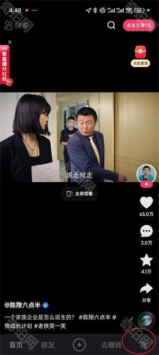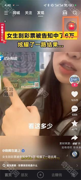 3、登入成功后就可以刷视频赚钱啦,随后点击右上角的小红包