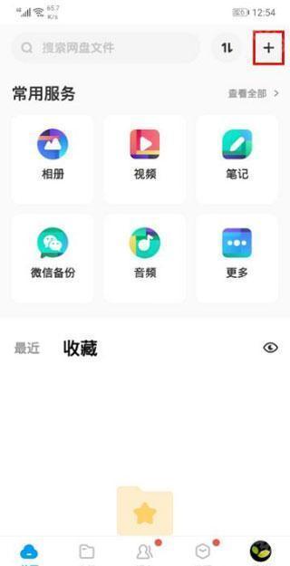 2、打开百度网盘的主界面以后,点击右上角的 + 号。