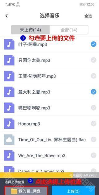 3、再根据自己想要上传文件的类型,点击相应的图标。比如说,我想上传音乐,就是点击“上传音乐”。