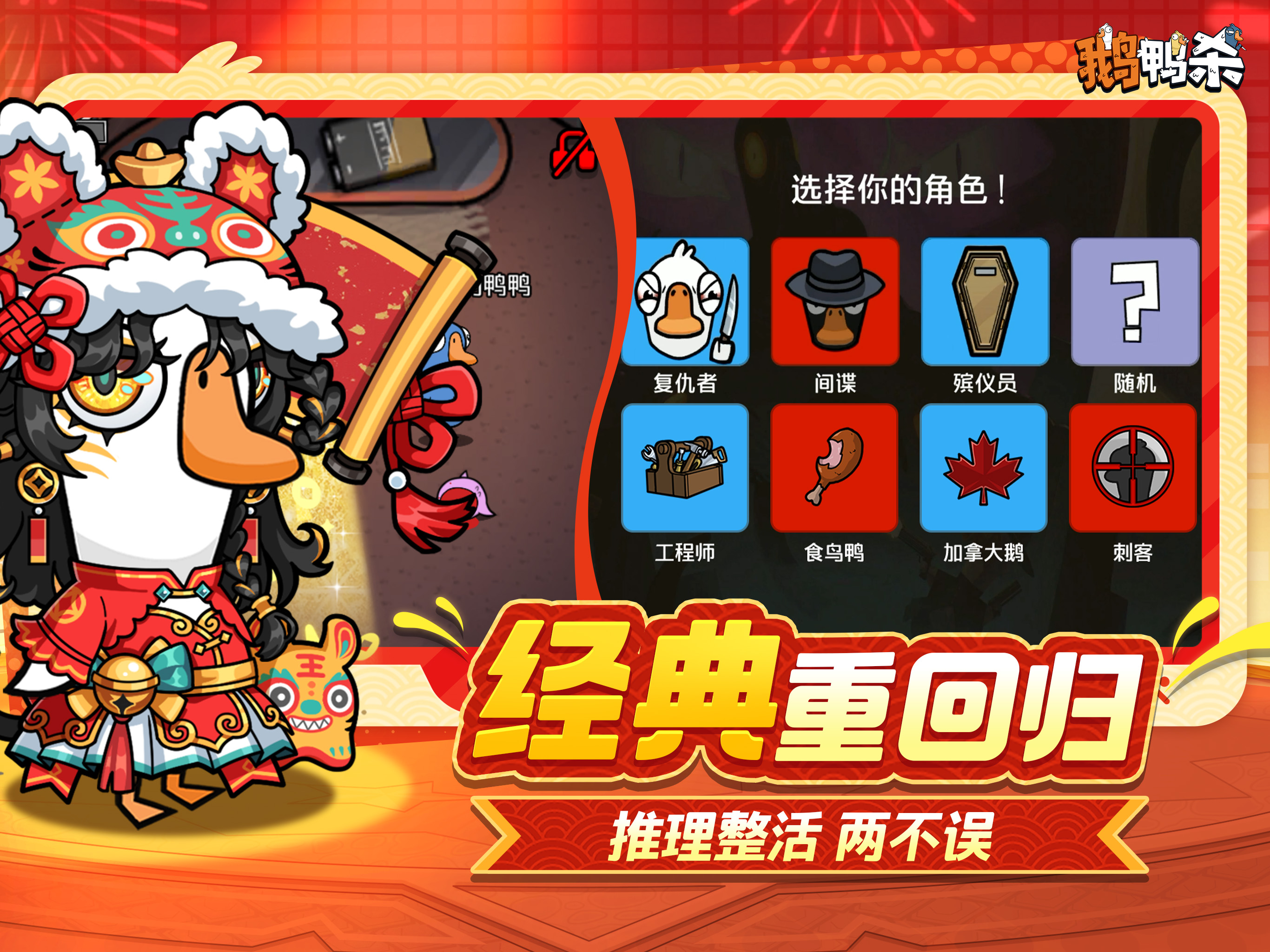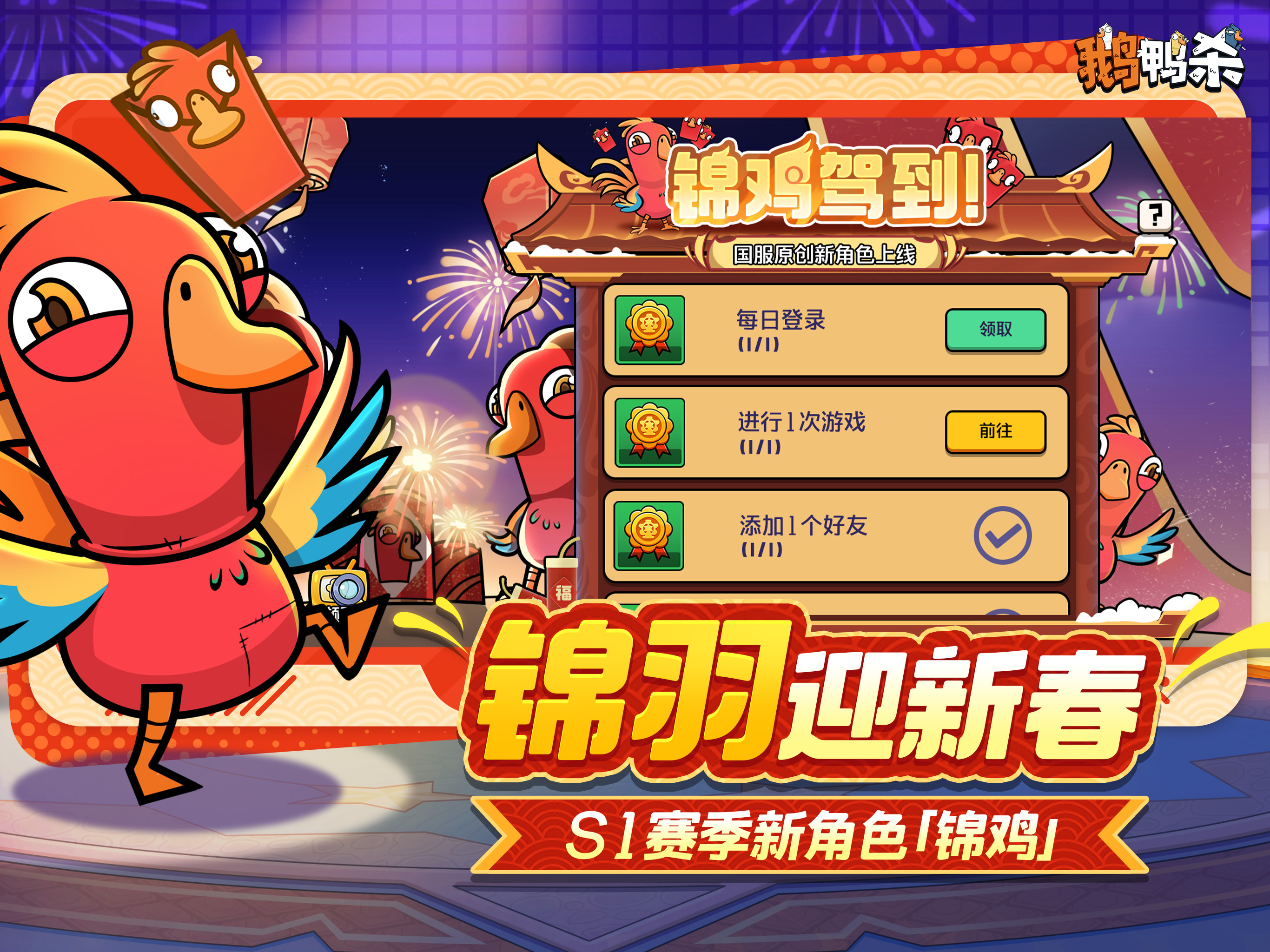 鹅鸭杀S1赛季[锦羽迎春]上线!国服原创角色「锦鸡」登场,新春将至,锦鸡带着红包,陪幸运鹅们来财来财~