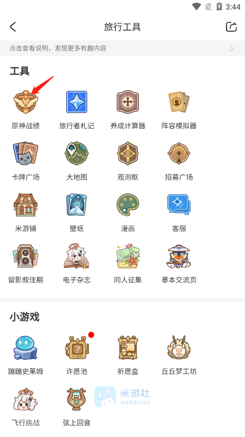 3、最后在旅行工具页面点击原神战绩,在这里面你就可以查看抽卡记录啦。