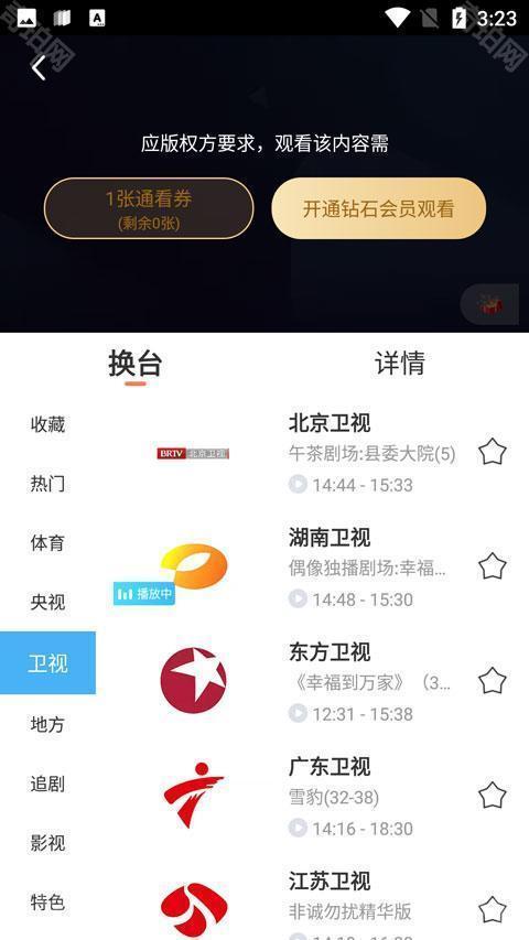 5、有的卫视观看需要会员,大家可以选择观看