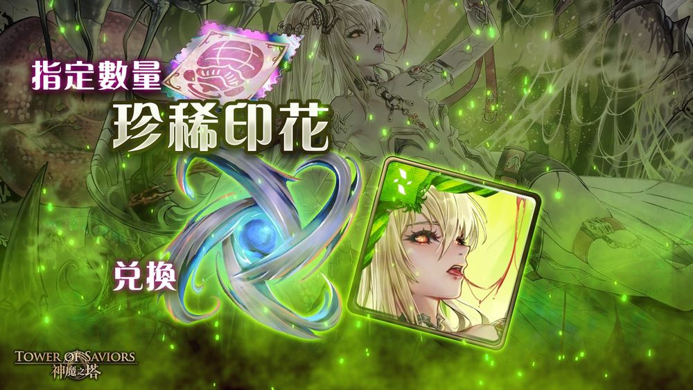 召唤师达成指定「神魔战斗通行证」等级,可获得免费奖励「珍稀印花」100 个及豪华奖励「珍稀印花」250 个。「珍稀印花」可用作兑换全新角色「朽烂乌蝇 ‧ 别西卜」、全新龙刻模式「龙辉」龙刻武装的龙刻原料「银辉」或不同种族的岩块。