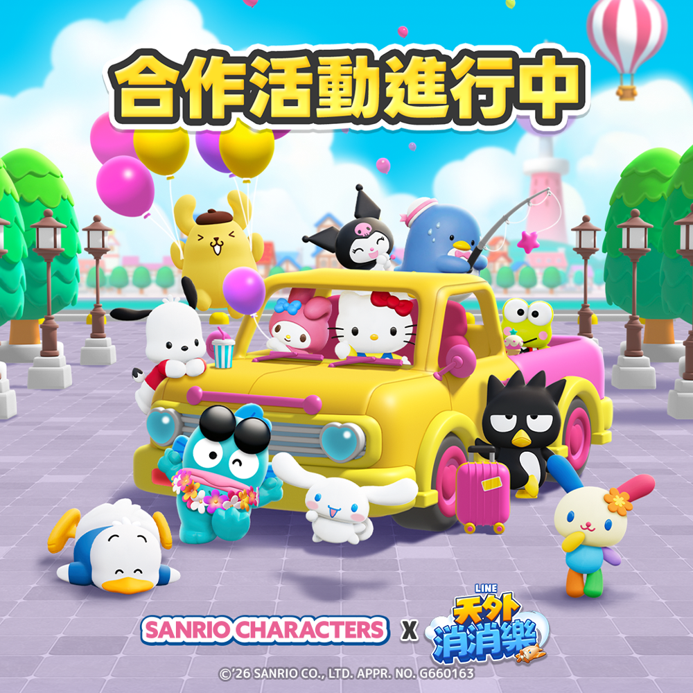 活动期间内,包含「布丁狗」、「大耳狗喜拿」、「帕恰狗」、「酷洛米」、「Hello Kitty」、「美乐蒂」、「人鱼汉顿」、「大眼蛙」、「酷企鹅」、「山姆企鹅」、「贝克鸭」、「花小兔」等三丽鸥明星家族成员都会在游戏中登场!玩家透过参与并完成各种合作限定活动与任务,就能获得期间限定背景故事与个人资讯图片、外框等众多奖励。欢迎各位玩家踊跃参与《LINE 天外消消乐》和『三丽鸥明星家族』的合作活动。