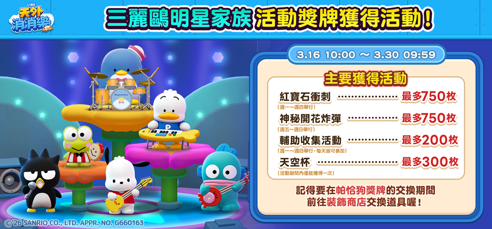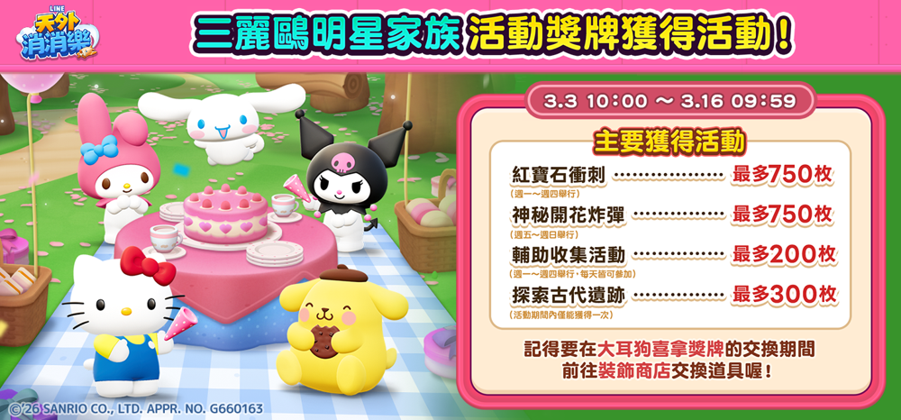 获得『三丽鸥明星家族』合作活动奖牌的大好机会!