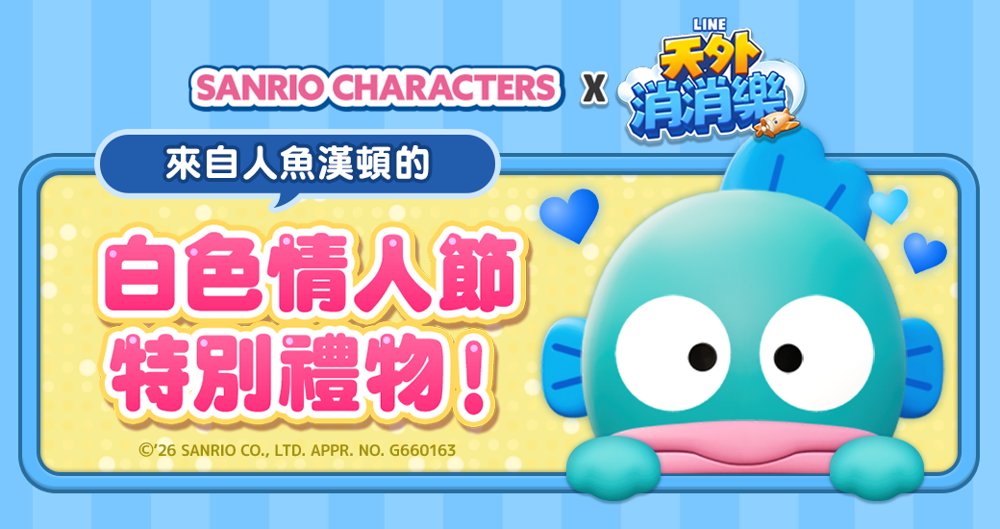 活动期间内,「人鱼汉顿」将会向大家发送白色情人节礼物,只要加入《LINE 天外消消乐》的 LINE 官方帐号,就能领取特别礼物喔!