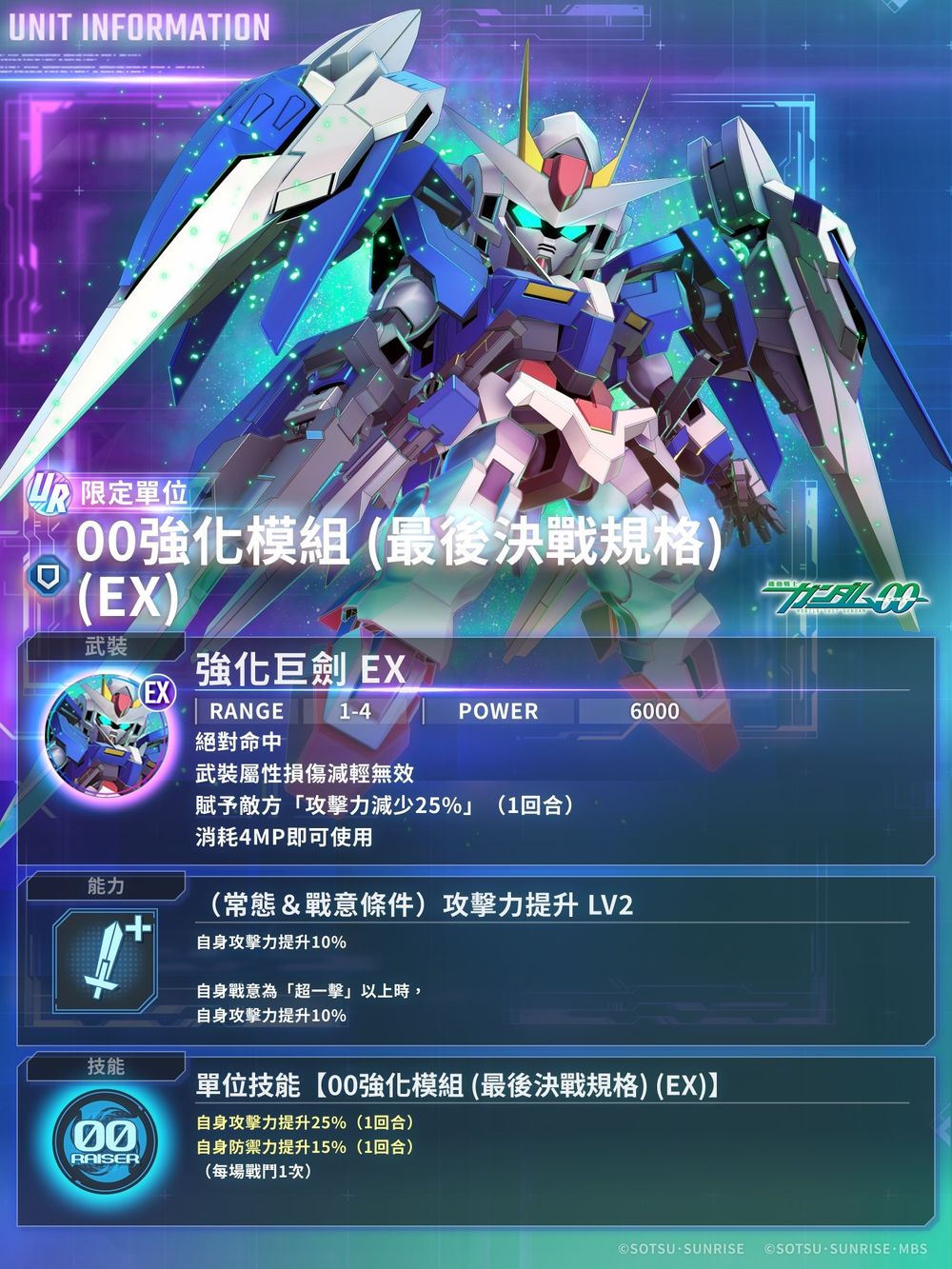 Bandai Namco Entertainment Inc. 旗下 App Store、Google Play 专用智慧型手机游戏《SD 钢弹 G 世代 永恒》宣布,将于 4/1 (JST) 推出全新单位 UR「飞翼钢弹零式 (EW 版) (EX)」/UR「希洛‧唯 (EW 版)」 、UR「00 强化模组 (最后决战规格) (EX)」/UR「刹那 ‧ F ‧ 塞耶」 、UR「托尔吉斯 Ⅲ (EX)」/UR「预防者之风」,现已公开新单位及新角色性能介绍。