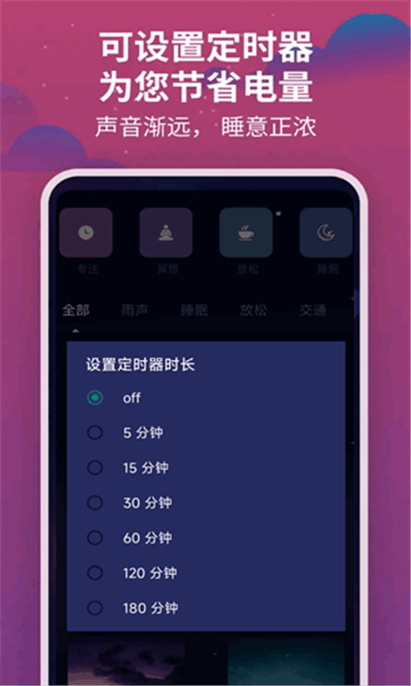 1、您可以根据自己的需求,选择不同的声音、音乐和冥想类型,甚至设定播放的时间和频率。