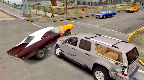 1、玩家既能自由驾驶各类汽车,在开放场景中与多种物体碰撞,测试汽车安全程度,感受极限撞击。