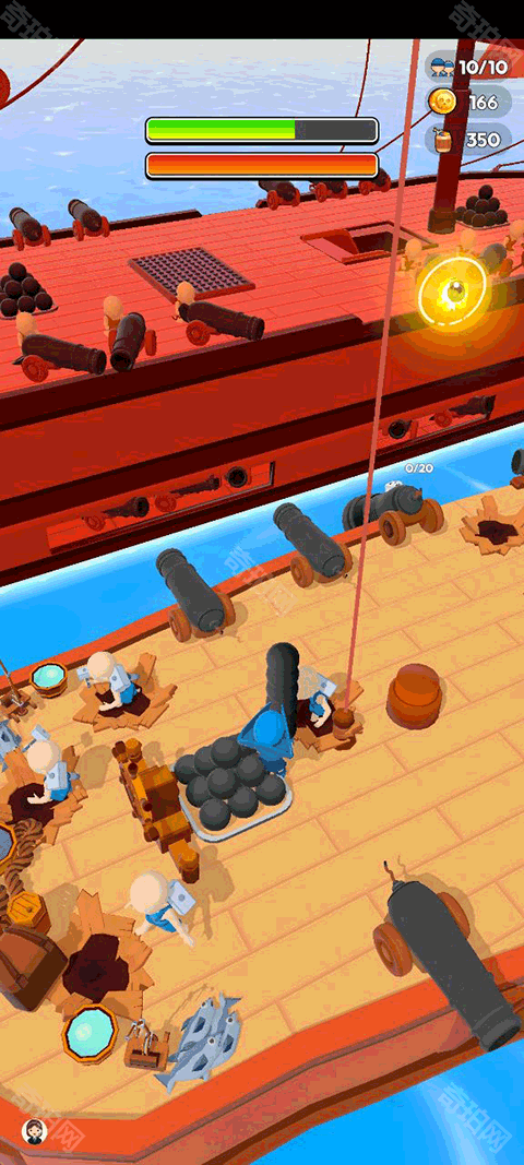 船上有2种不同的大炮,一种需要自己瞄准,但伤害更高,另一种直接点击就可以了,大家可以根据自己的玩法进行选择。