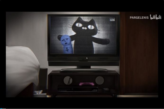 八尺大人以后互动喵星人玩偶左边的纸条会出遥控器,输入密码4927(就是每天看电视给一个数字),镜子之夜的下一天会遇到喵星人。