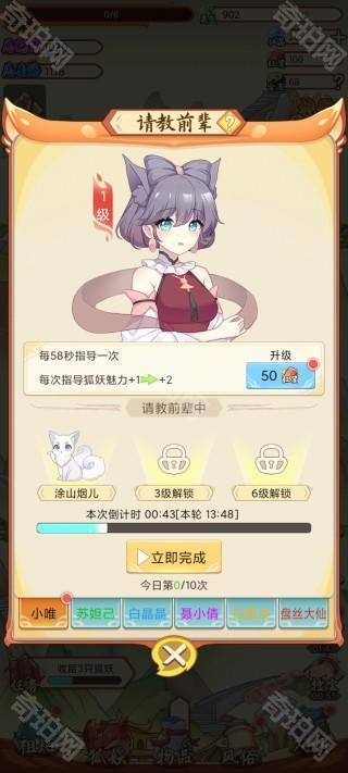 在游戏中请教前辈也是提高狐妖属性的方法之一,前辈等级越高,请教增加的属性就越高。