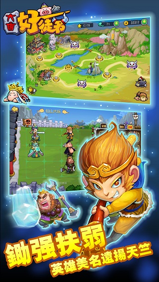 大唐好徒弟是一款以西游作为原型打造出来的抽卡塔防策略类型的游戏,其中拥有了很多不同的西游角色,你要做的就是将这些角色进行组合,利用不同的技能之间的配合才能发挥出更强大的效果,随着关卡的深入你还能获得更多的金币和如意奖励,这些奖励能帮助你提升自己角色的实力以及获得新角色,享受通过配合阵容完成每一轮冒险,感兴趣的话不妨前来本站下载安装体验吧!