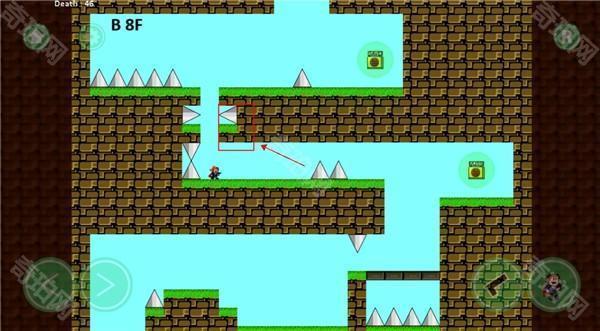 5、接下来需迅速通过低处区域,注意下方尖刺会向上突刺,但不要深入底部,在边缘位置暂停等待时机。