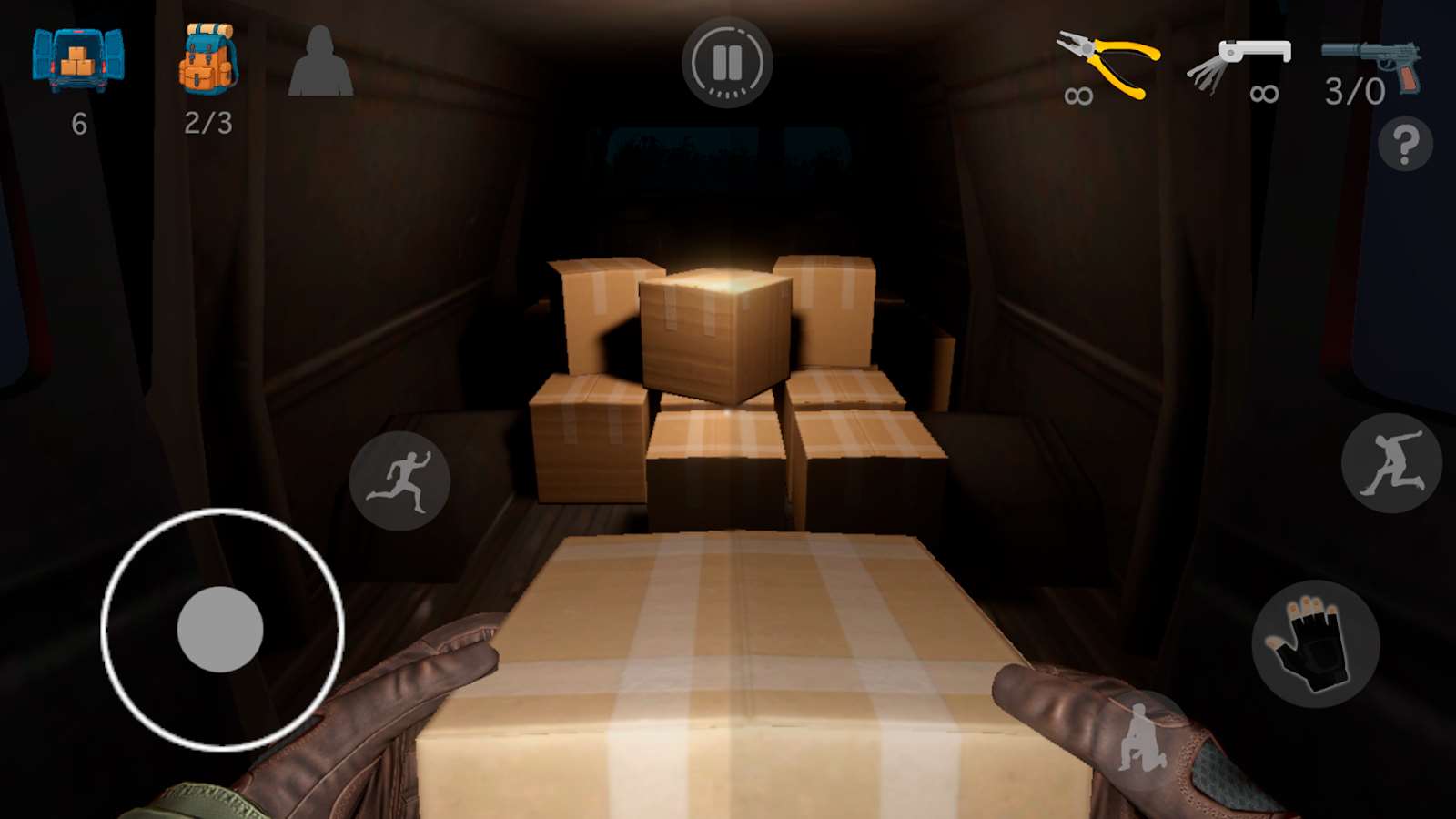 2、屏幕的左边是操控游戏的移动键位,不断的在游戏当中隐蔽闪躲。