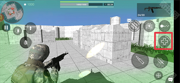 3、在游戏屏幕的右边是不断的射击键位还有趴下跳跃键位,非常方便。