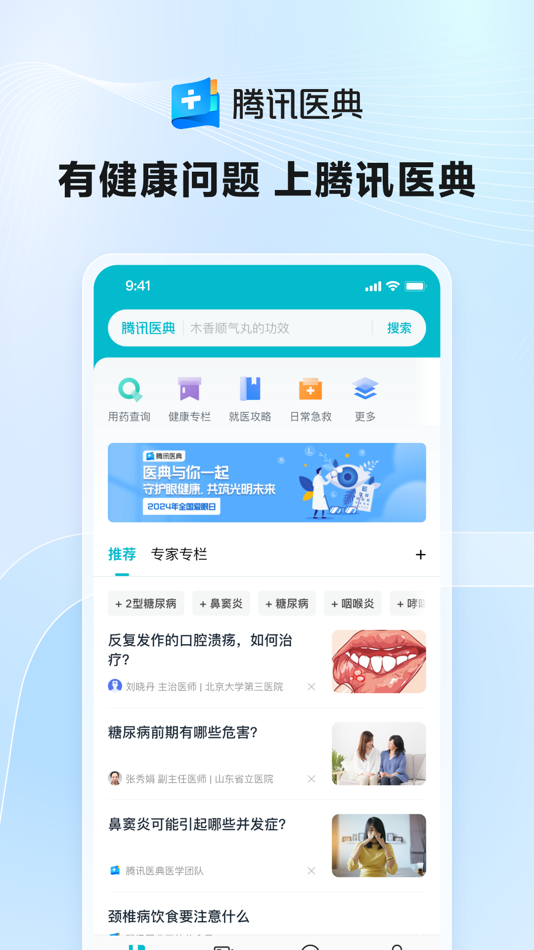 3、平台为您提供疾病概述、科普文章、专家视频、知识问答、急救和患者交流社区等服务,推动医学健康科普发展。