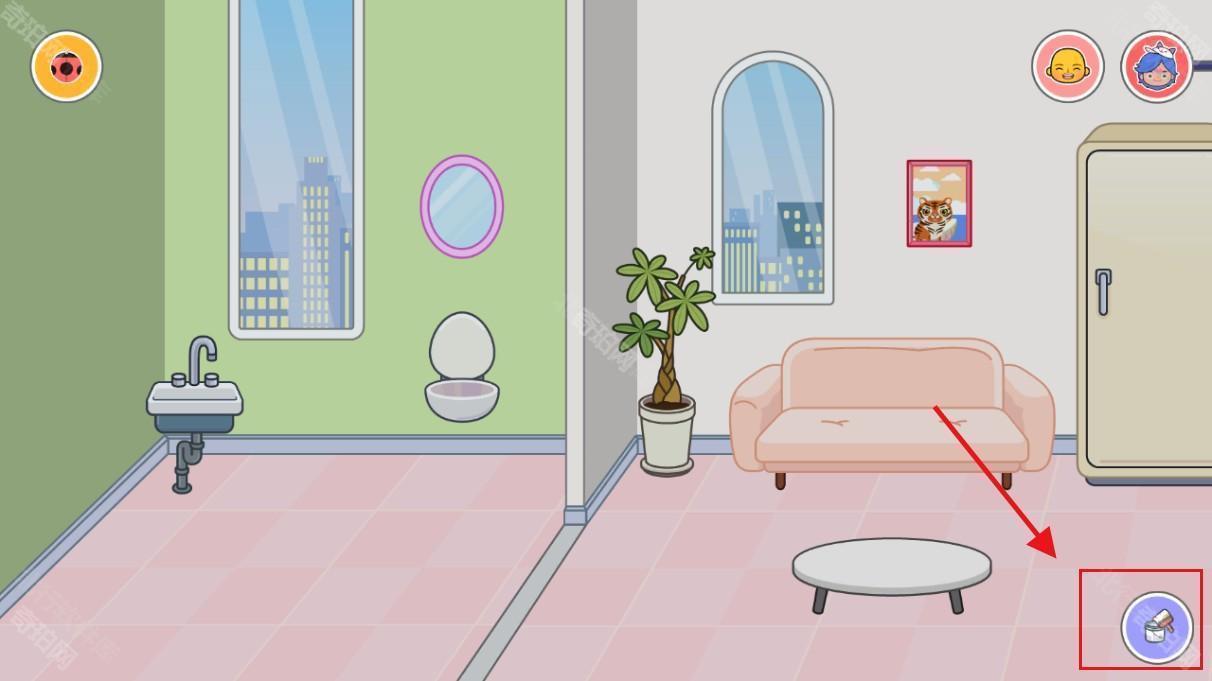 1、进入一个自建房,点击屏幕右下角的【刷子】按钮