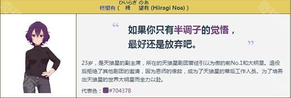 23岁,是天狼星的副主席,所在的天狼星剧团曾经引以为傲的前No.1和大明星。
