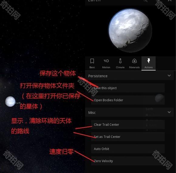 Moction选项中,主要调节运行轨道和移动速度,也可以锁定星体等