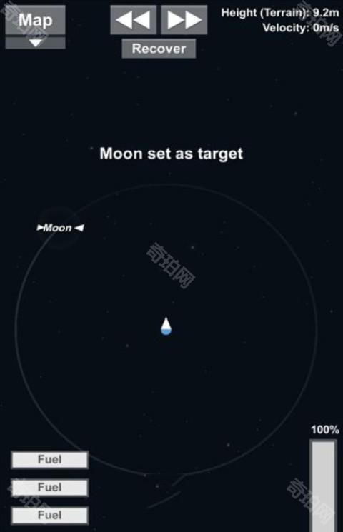 7、在推进时候后在到达月球10KM的时间开启燃料动力,然后要注意下降速度,不用过快否则会坠毁;