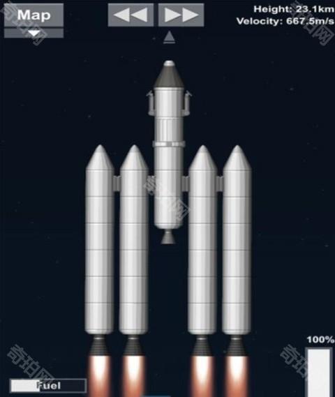 3、起飞的时候需要五个染料一起点燃,中间的染料会先用完,用完后丢掉可以降低火箭的重量;
