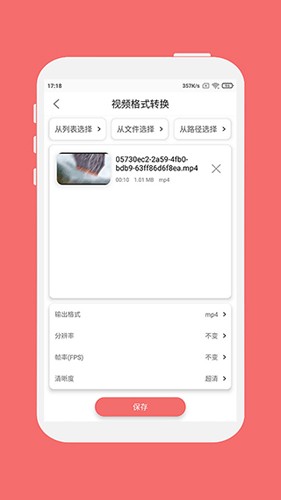 格式大师是一款功能强大的文件格式转换工具软件。应用可以帮您轻松处理不同的音频或视频文件,手机上就能方便的对其格式进行处理,让您更好的导入或者导出。通过一键式操作转换视频的方式,让您只需两步就能完成视频转换,十分方便。应用支持多种格式的视频互转,包含mp4、3gp、avi和mov等等,轻松满足更多用户的操作需求。想要体验的小伙伴快来本站下载试试吧。