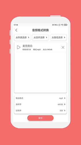 2、【音频格式转换】支持mp3、aac、m4a、wav、flac、wma、asf、amr等格式互转,同时还支持采样率、比特率等参数设置。