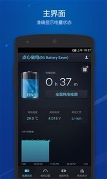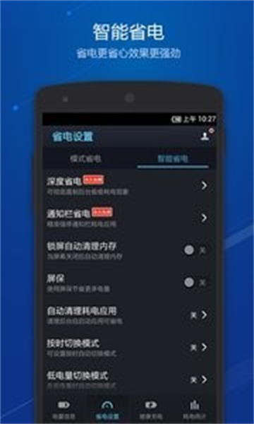 点心省电是一款好用的手机电池管理软件。您可以实时查看电池的使用情况,检测电池性能,通过关闭不必要的应用有效延长手机电池使用时间。应用还能为您进行智能省电,在充电过程中自动帮您维护,有助于保养电池。应用将准确为您预测剩余电量可用时间,帮您更好的规划充电计划,从而方便的保护手机电池的性能。有需要的小伙伴快来本站下载体验试试吧。