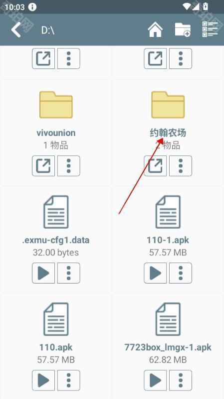 4、使用鼠标导航至D盘,找到名为“约翰农场”文件夹,然后打开并启动“JohansFarm.exe”会黑屏一段时间,请耐心等待;