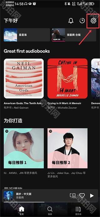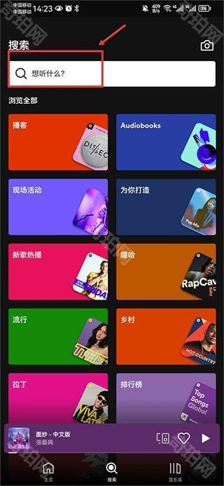 1、在本站下载安装好打开spotify后,在搜索页面中输入歌曲名字或者艺人名字;