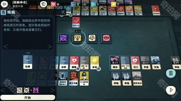 先将热情技能(想象)投入到工作中,按要求添加热情或者神秘,然后点击开始,这时要求放入灵感来源。可以将所有影响类卡牌放置在此处,包括但不限于:安逸、念头、入迷、恐惧、活力、活力:学习经验、灵感、灵感:学习经验、博学、博学:学习经验、以及高阶影响。等作画完毕后,放在灵感来源的卡会被原封不动地退回,时间仍然保持在放置的那一刻。