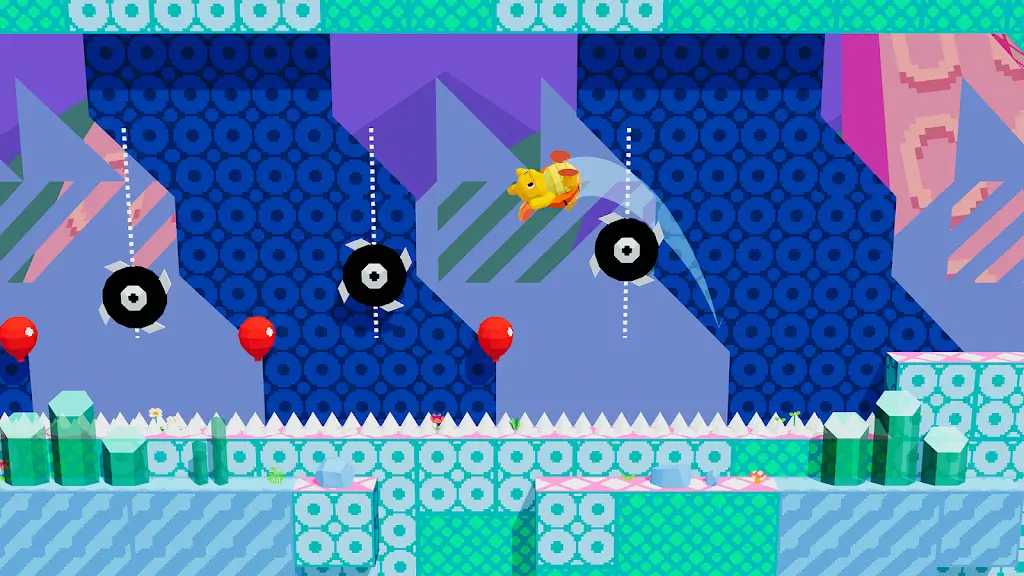 《扣扣兽》(Dunkadillo)以“篮球形态的犰狳”为核心设定,玩家需操控角色在墙壁、地板和天花板上弹跳,通过双跳机制越过爆炸蜜蜂、心不在焉的豪猪和过分热情的青蛙等障碍物,最终完成营救任务。这种将篮球运动与平台跳跃结合的设计,既保留了物理弹跳的趣味性,又通过角色变形增添了策略性。玩家的每一次跳跃、每一场战斗,都与音乐紧密结合,极大提升了游戏的沉浸感。
