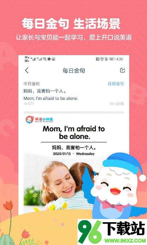 1、每日金句中包含高频的生活场景,让家长与孩子能一起学习到家庭环境中实用的句式,自然将启蒙英语融入到生活中。