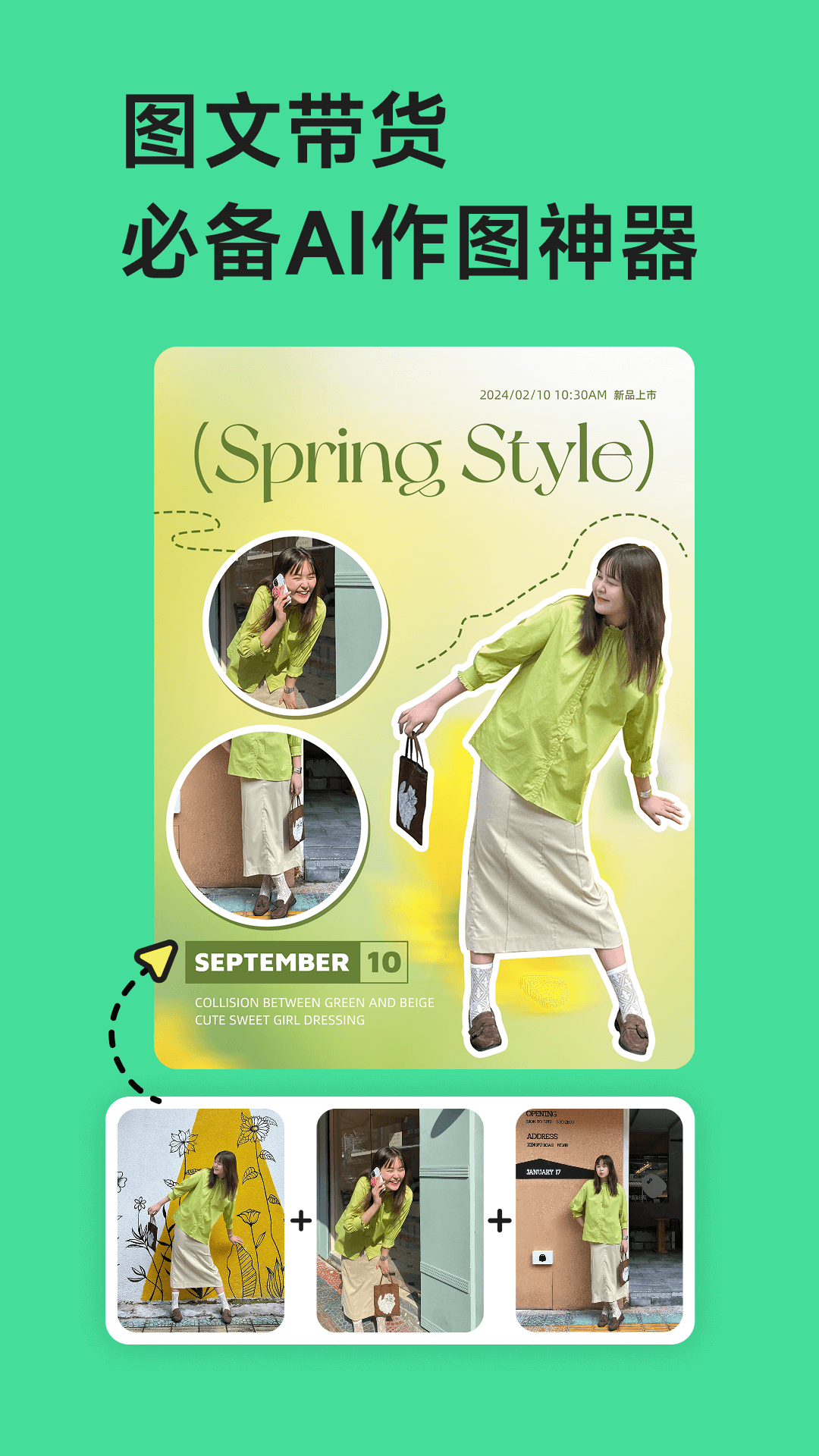 2、提供多样化AI设计功能,如海报、商品图、模特等,快速生成设计。