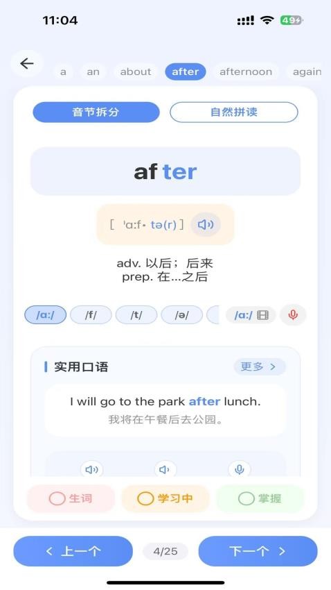 3、支持用户可以对需要的单词来随时拆解,就能够拆解拼读单词,就可掌握拼读的技巧。