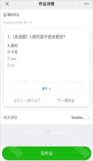 点击作业进入详情页,点击【写作业】按钮开始作业作答,做答完后点击【提交作业】按钮完成作业答题。