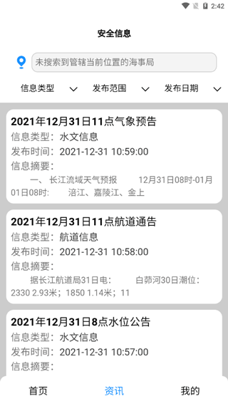 长江北斗是一款便捷实用的位置信息查询软件。应用支持通过类型、长度、状态、数据来源等多种条件筛选符合条件的船舶。您可以在这里设置监控区域,船只靠近时自动报警,并通过微信、短信等方式提醒工作人员,为您的日常使用带来更多便利。