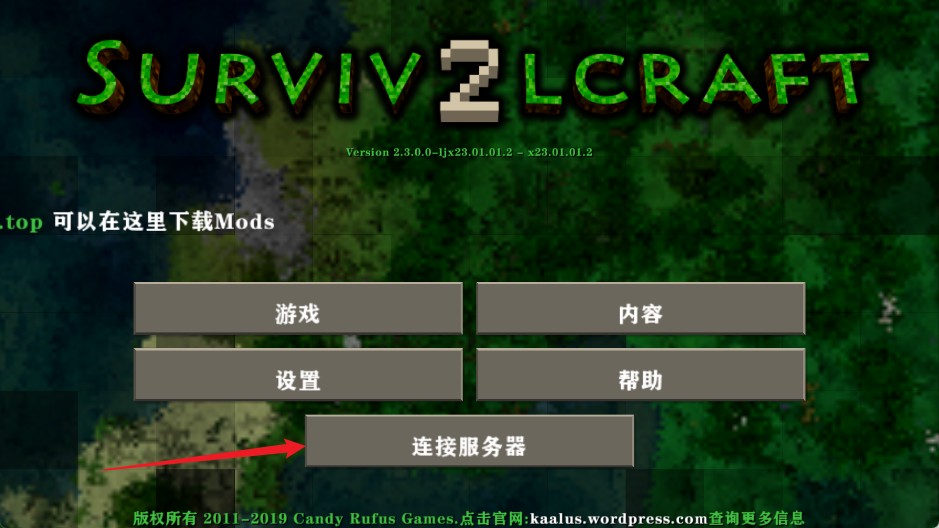 1、启动《生存战争2双人同屏版》游戏后在主界面找到并点击“连接服务器”(如图所示)。