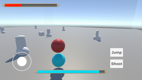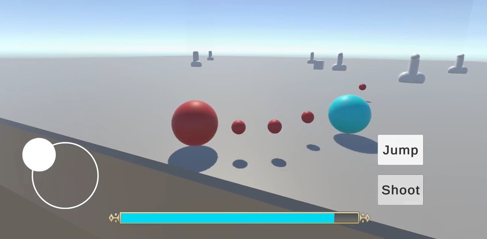 2、移动控制:滑动屏幕左侧的虚拟操纵杆调整方向,点击【跳跃】跳过障碍物,点击【射击】发射能量波。