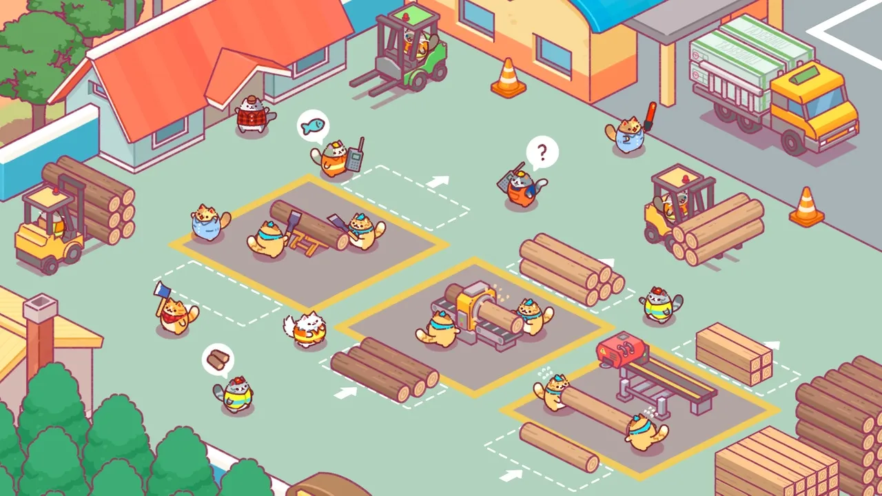 2、猫员工的设计非常可爱。根据他们的专业合理安排工作,提高伐木厂的效率,收获更多的木材。