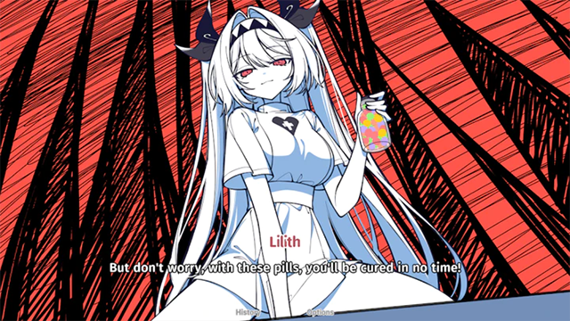 3、结局三:选择赞同莉莉丝而贬低自己的选项,达成莉莉丝存在而否定自己结局。在这个结局里,主角认为自己一无是处,没有莉莉丝陪同什么事都办不好,莉莉丝为了安慰主角会一直存在。